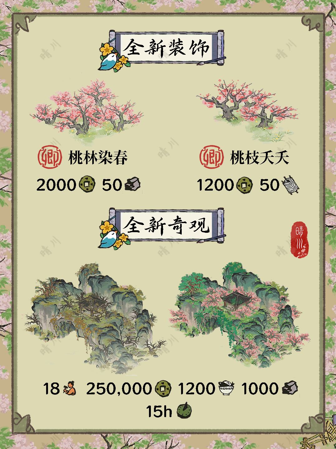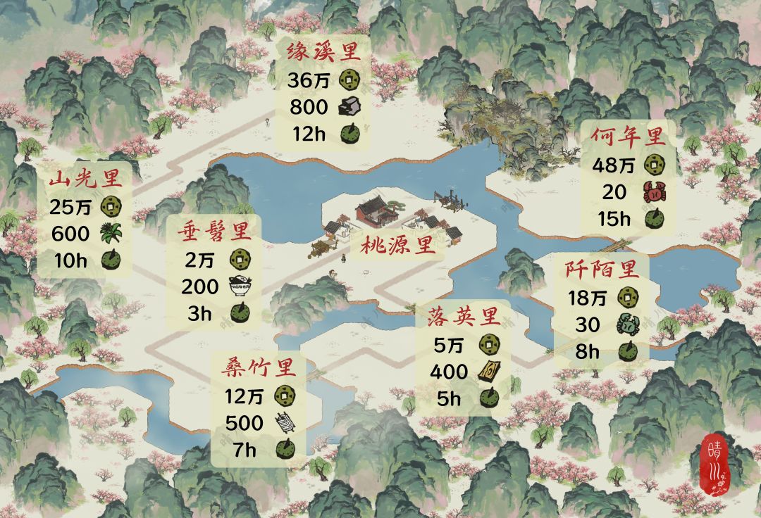 桃花源开地物资统计可以直达图3和图4,各位知府大人可以通过码头先行准备向桃花源运送开地所需物资。