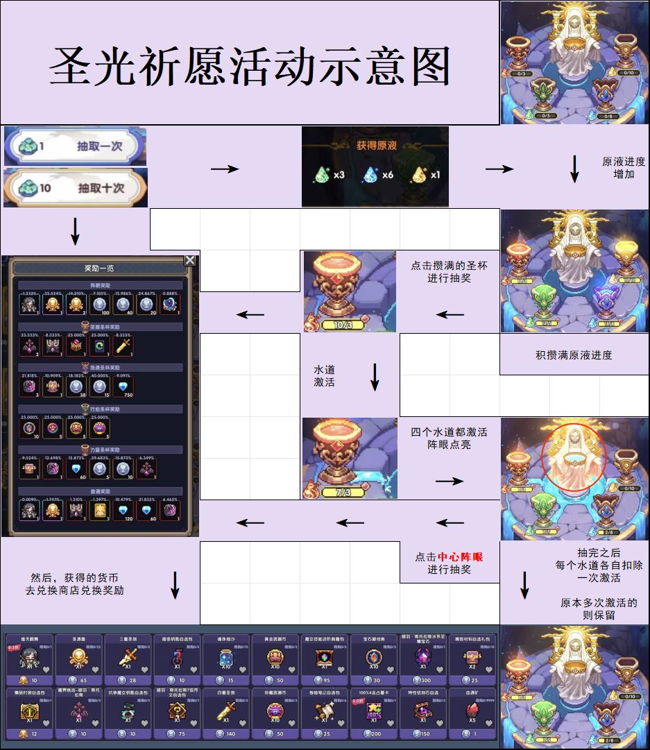 本次时装活动圣光祈愿比起往期同类活动,多了一些道具奖励(新水魔女至臻宝石、四连星卡),很值得大家去尝试和兑换一下喔