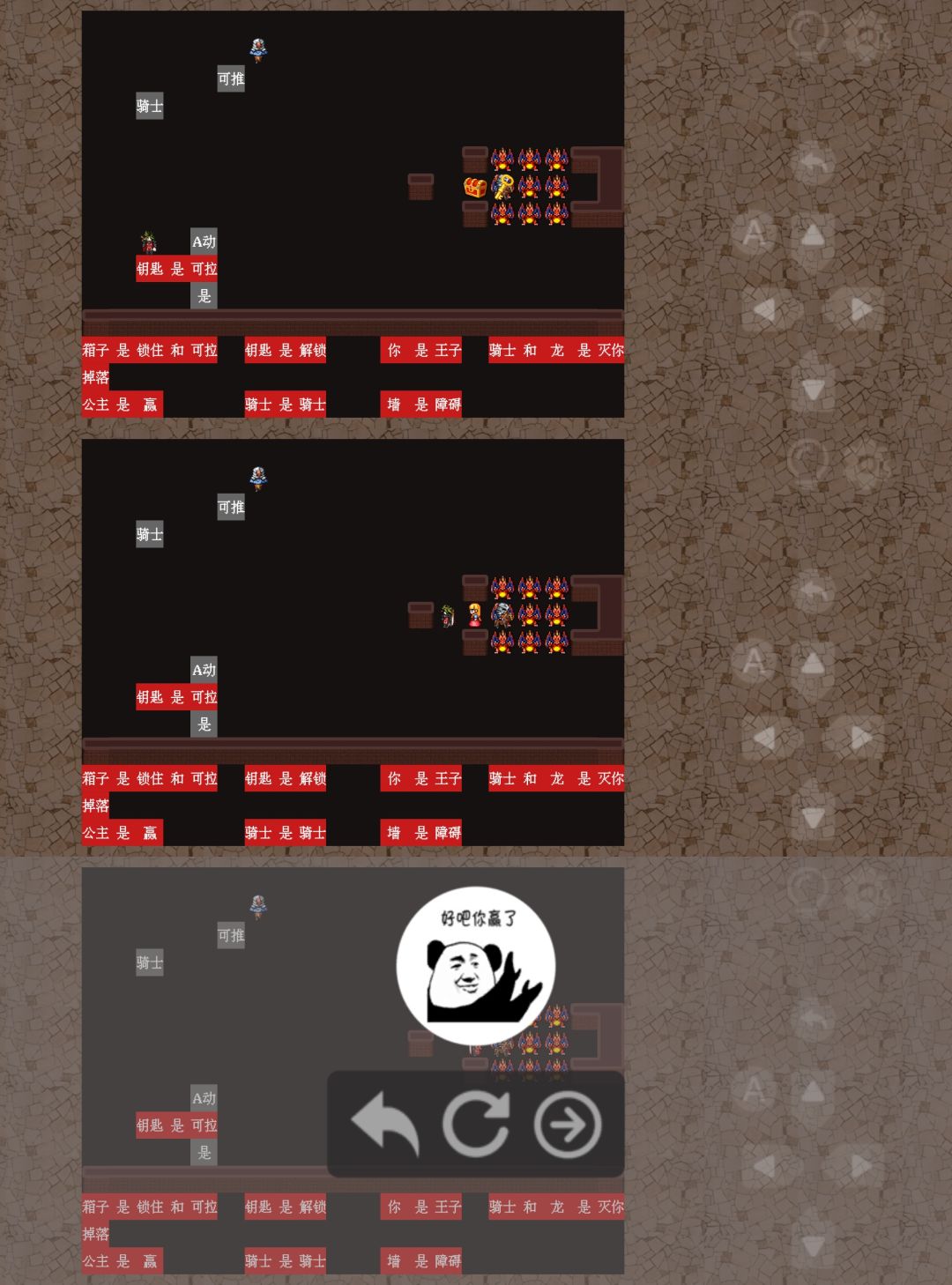 4、同样的方法,将【钥匙】弄到【宝箱】位置,掉落【公主】,触碰【公主】,过关