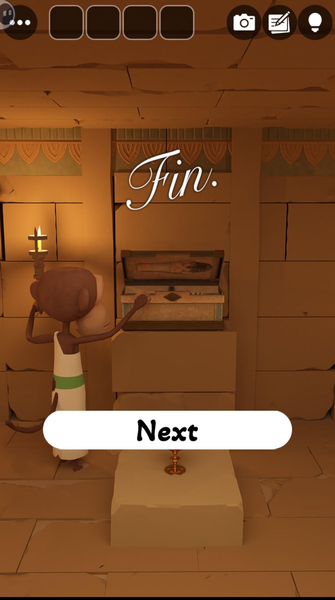 11.在⑤右壁龛得到石钉 给④猴子 得轮子提示 打开⑤左壁龛箱子 得卷轴