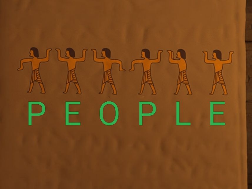 〈第1个图案手的位置是 左下右上 对应左边下方线条和右边上方线条 两个线条结合形成字母P 其余同理 得字母people〉
