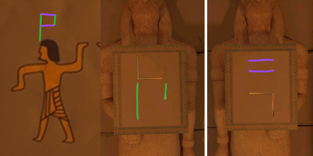 〈1个大型金字塔 2个中型 3个小型 所以大三角对应数字1 中三角对应2 小三角对应3〉
