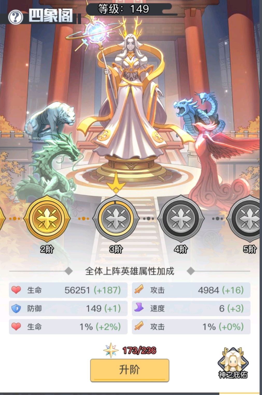 - 在四象阁中,复序者们在召唤出五星英雄或将基础五星英雄升星时可以获得四象之光,用于提升四象阁的等级,可以获得大量属性加成。