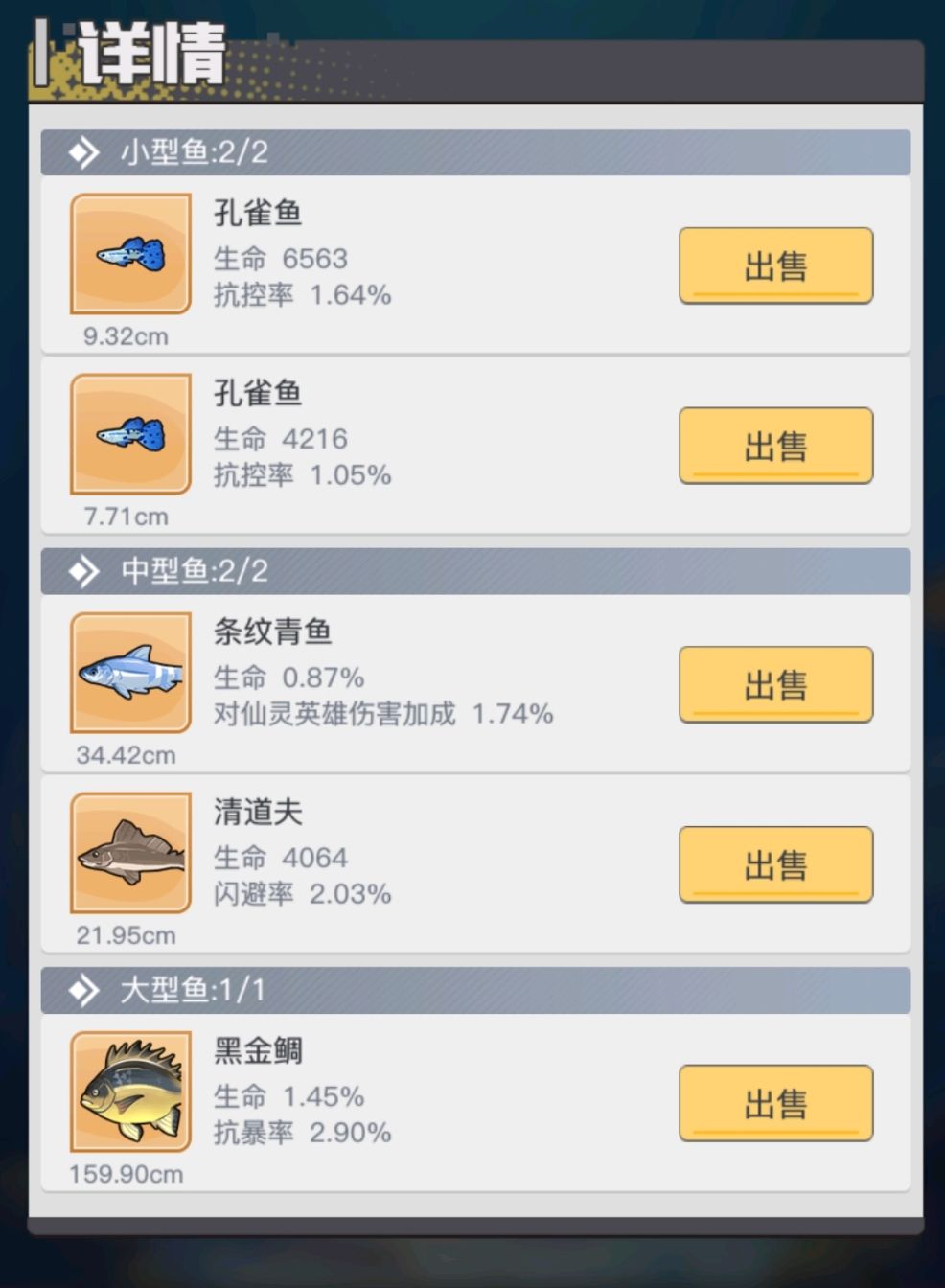 钓鱼玩法看似休闲,钓上来的鱼却对提升战力非常有帮助。将钓上来的鱼类放入水族箱后,可以获得相应的属性加成,不同鱼类有不同的加成。一般而言,长度越长,品质越高的鱼可提供的属性加成越多。在新手期,可以先把品质低的鱼放进水族箱中,等钓到高品质鱼类后再作替换。各位复序者也可以开通钓鱼特权,不仅可以开启自动钓鱼功能,还可以获得更多面包!