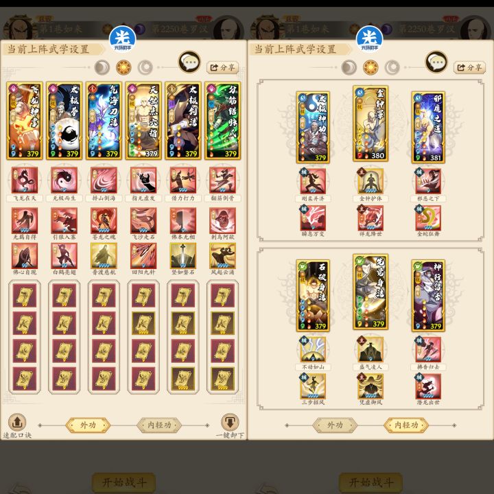 ②前3个外功可以根据对面起手的技能调整,原则就是飞龙控住出手后手,气海控住精进,太极吃到对面的出手;飞龙和气海谁在前,谁就带无羁佛心,在后的带苍龙慈航。