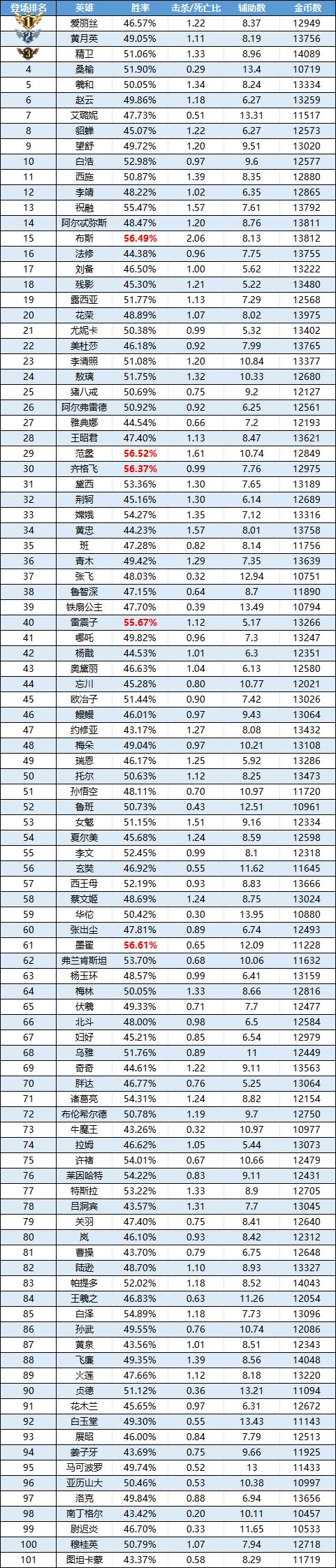 【高段位】精卫、羲和登场率冲入前五;胜率榜墨翟稳定发挥保持TOP1,布斯一飞冲天,胜率飙升至TOP3;精卫稳坐“大金主”之位。