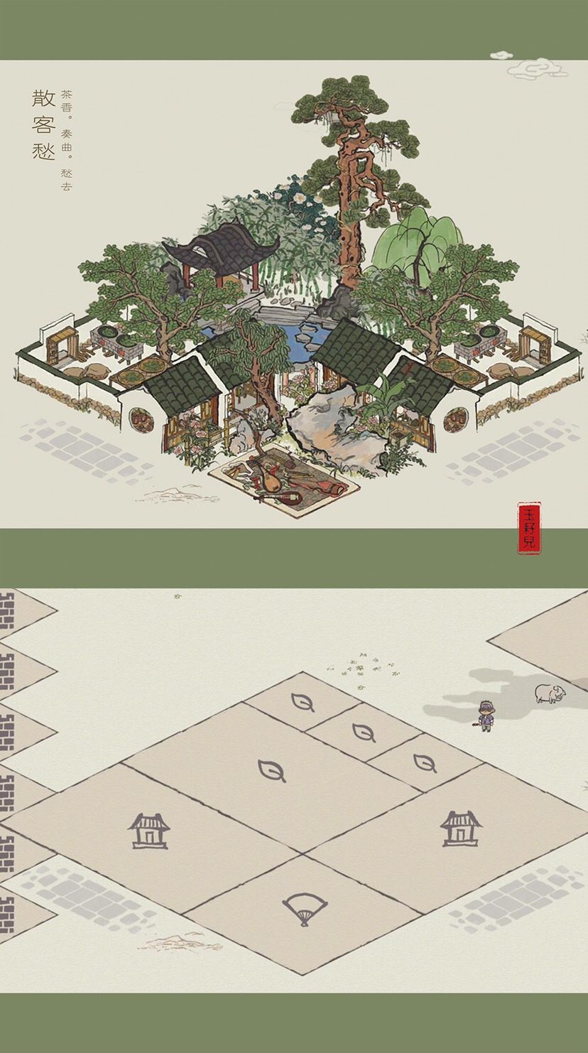 根据杭州地形做的部分布局,思路是把它们分成四边形聚合,交叉装饰,草木花卉