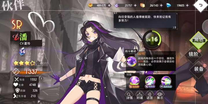 潘(SR):前中期最强单体输出 前期依旧不错 可以阿瑞斯上来打一下主角 就是抽取率变低了 出ssr都不出潘 前期如果有4星以上的潘可以用 如果没有也可以用4-5星的赫茜代替