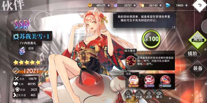苏我美雪:群体攻击+降怒技能可显著降低敌方技能释放频率,是前期推图的核心角色 刷初始可以拿一只 商城换一只 前期签到活动8天有一只 八天签到后邂逅活动可以选择一只