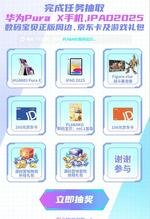 活动一:完成任务抽HUAWEI Pura X及iPAD 2025等好礼
