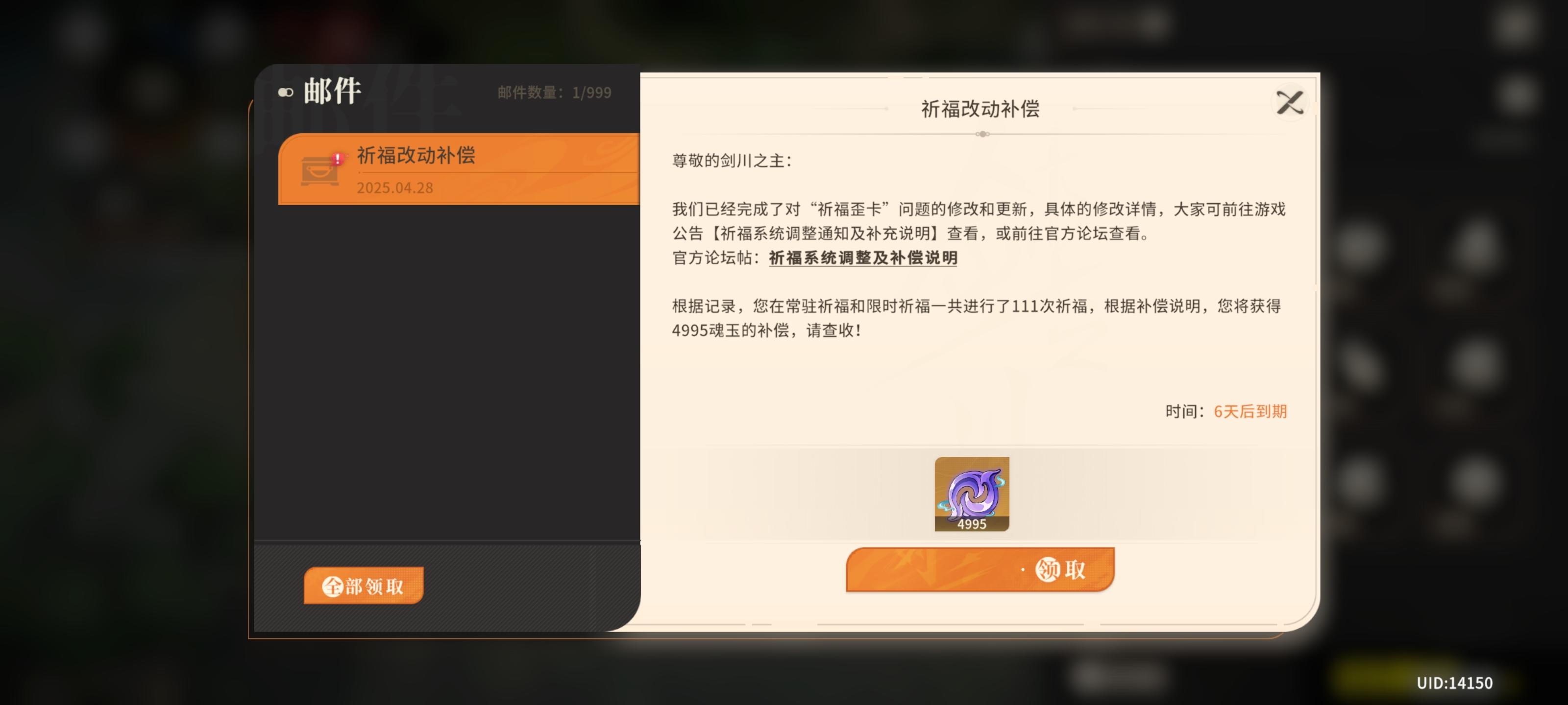 截止昨天共111抽up池,共3命