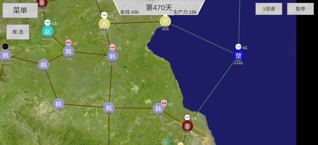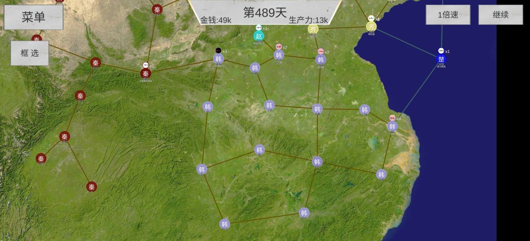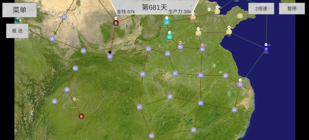 到此基本危机解除。我玩了四五次王翦均是向下进攻上蔡,没有遇到他不管我然后向右进攻大梁的情况。而且他进攻的时机不固定,所以建议存档多次尝试。
