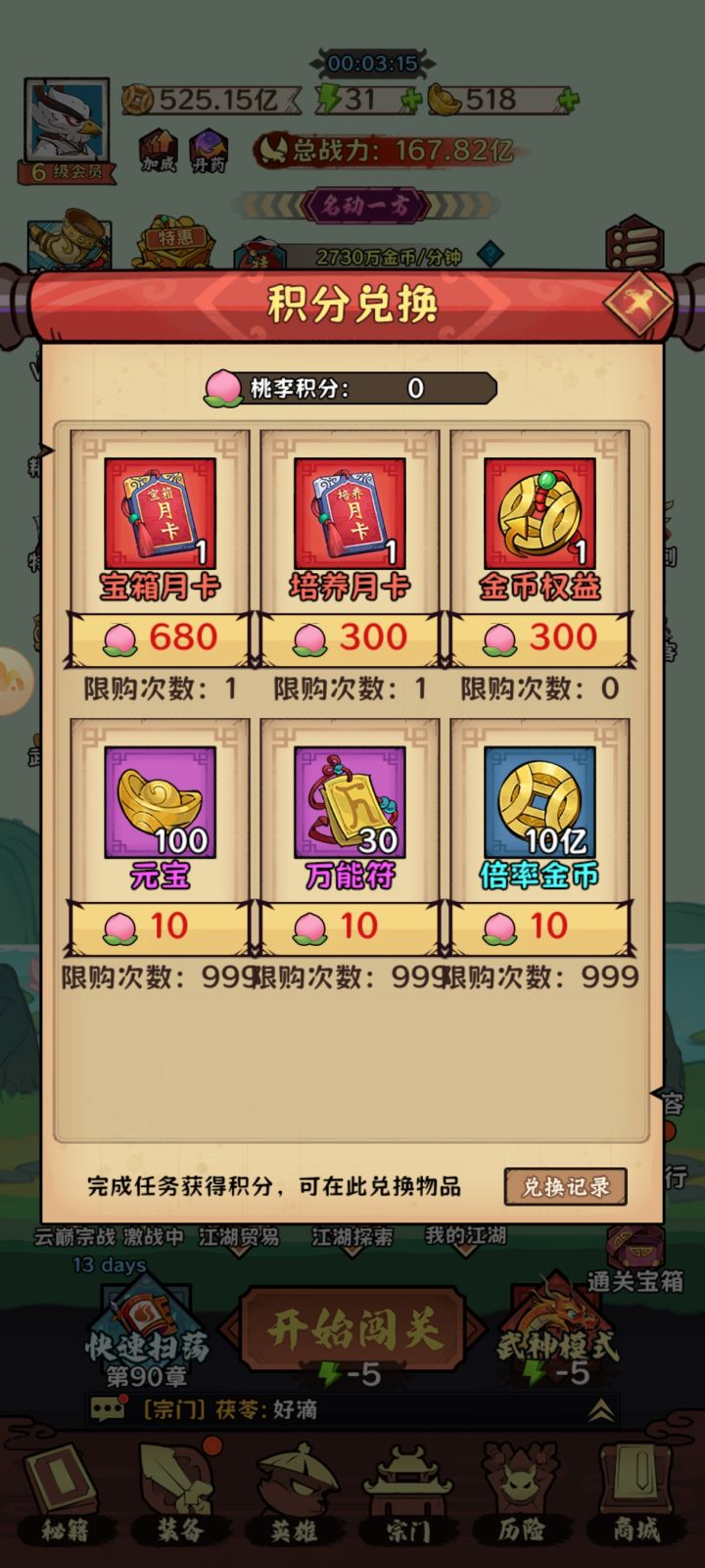 出师之后给桃李积分,可以积分兑换金币权益月卡等