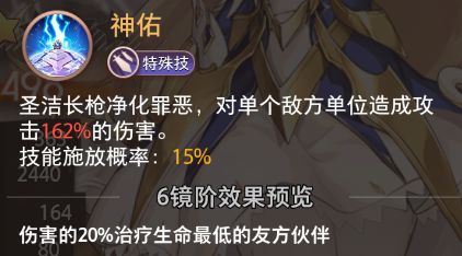 圣洁长枪净化罪恶,对单个敌方单位造成攻击162%的伤害。