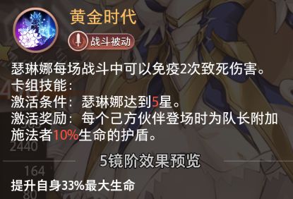 瑟琳娜每场战斗中可以免疫2次致死伤害。