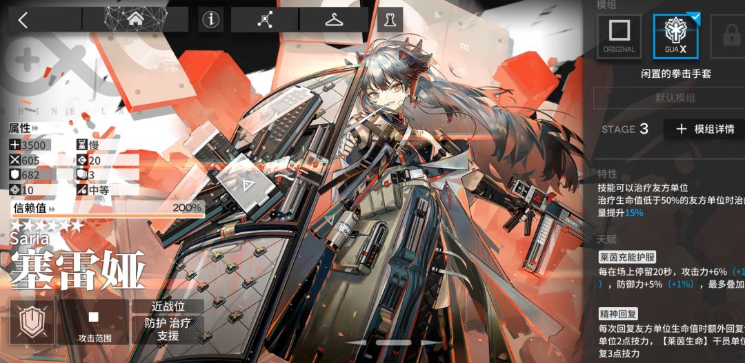 重装:塞雷娅(以下均默认为信赖100,精二1级,1潜能,无模组)