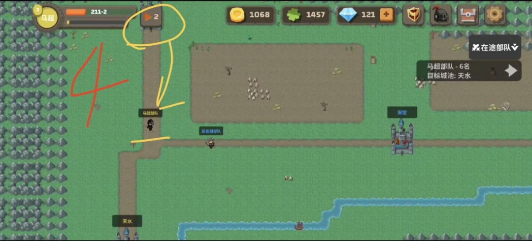 这个时候天水兵马出动,往西凉城过去将曹老板挡着免得他回定安〔敌方战败有几率逃跑,我们这一只奇兵就是防止他逃跑,打开这个模式局面的关键就靠降服曹老板的武将了〕。一定要控制好时间,等天水的兵马尽量拦住曹老板的后路。