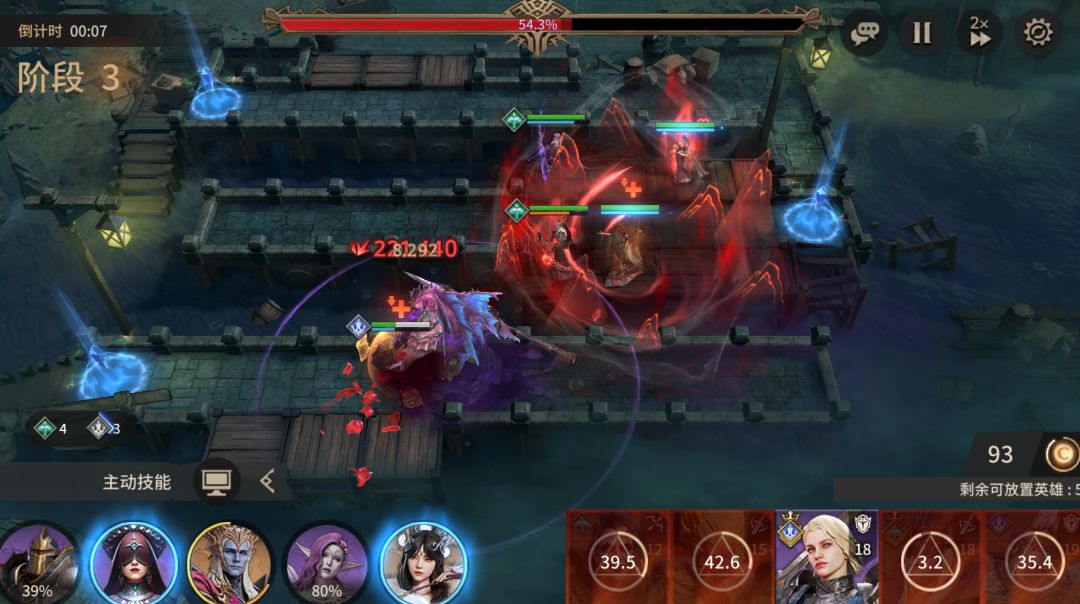 这关BOSS会激活场上的机关,机关会优先攻击范围内最后放置的英雄,所以大家要注意放置的时间。主要难点是要有英雄承受机关输出,此外高阶毁灭者拥有极高的攻击、防御数值,建议用魔法输出核心来打。