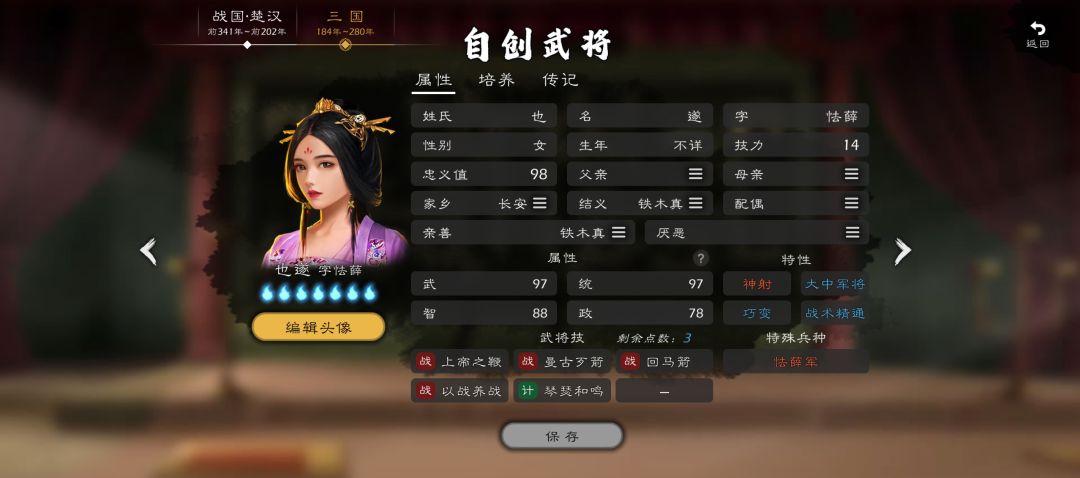 ⑦⑧回马套,用97天赋白嫖回马箭和以战养战,1或2个回蓝特性+以战养战保连动技蓝耗,神射同样可改为通神。