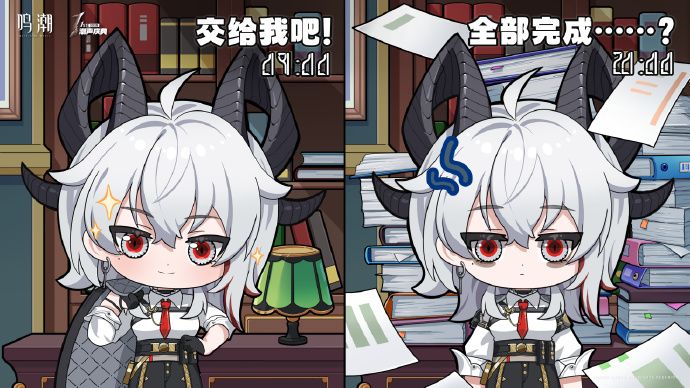 赞妮上线,官方也是放出来一张下班系列Q版绘图。