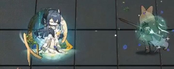 特效细节上采用蓝色花朵和湖水波纹作为敌人受击特效,辅以白色星星和绿色叶片,本体背景也做的比较饱满