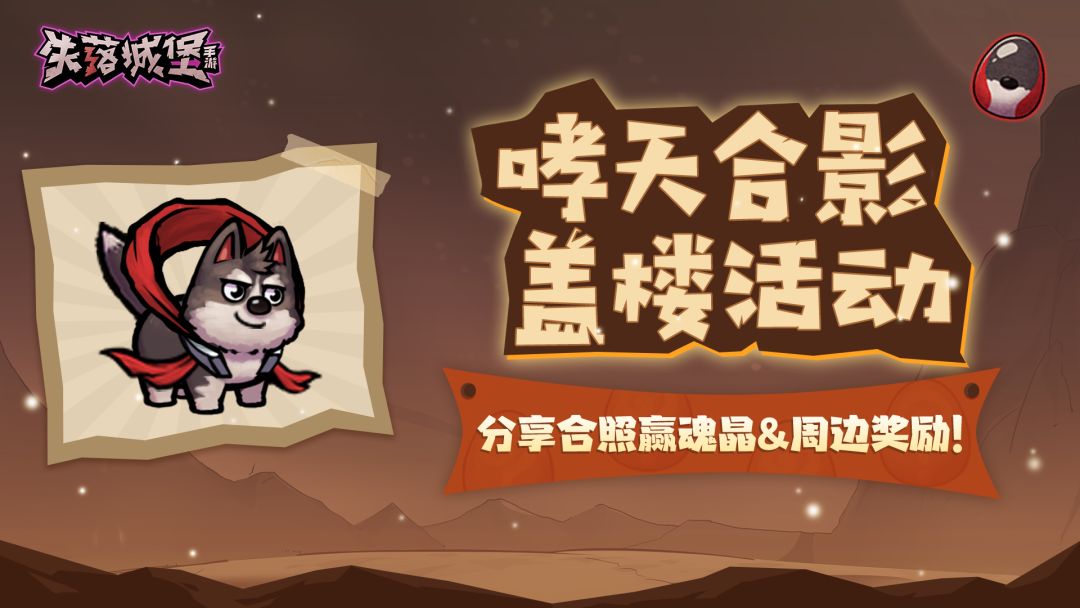 由于哮天当前仅能在活动期间限时获取,小蓝龙想发起一次合影留念活动,来记录下宝藏猎人和哮天在城堡探险的珍贵回忆!