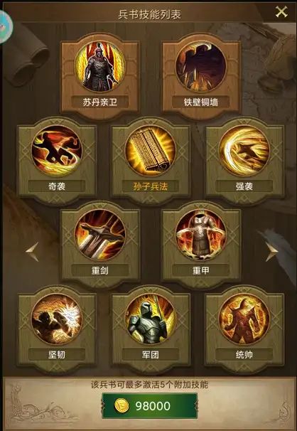 达到特定等级时,可能会激活新的兵书技能