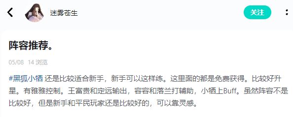 2.带话题#黑狐小牺 分享你的阵容攻略,可说明阵容优缺点,发帖完成后截图,在本帖评论区发布帖子链接即可