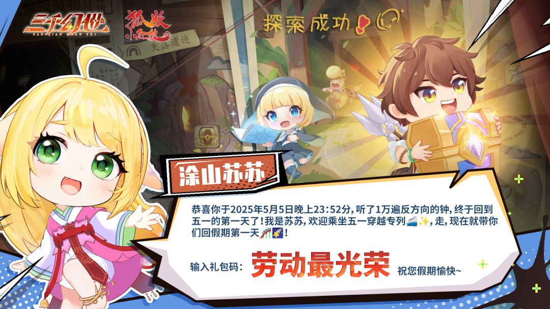 输入神秘礼包码【劳动最光荣】领取你的劳动节大礼包!🎁这一次,假期由你无限续杯!(๑•̀ㅂ•́)و✧欢乐时光永不堵车~请系好安全带!( ̄▽ ̄)~*