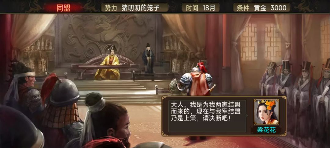 见天下大乱,百姓民不聊生,梁花花希望以一己之力推动统一大业,早日结束战火。