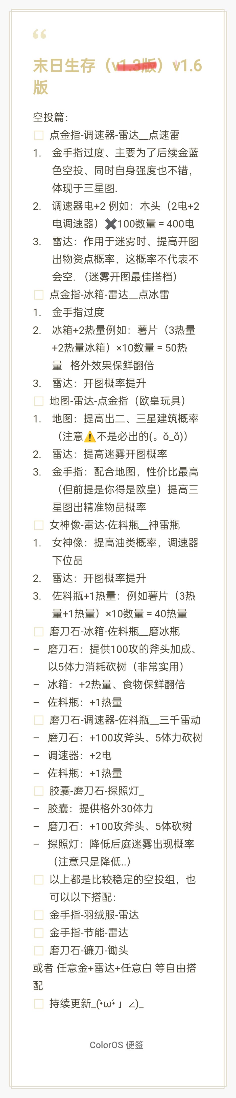 16天后:进迷雾,那么到这里挑战开始。首先在食物没腐烂之前,还是找油为主。但食物腐烂开始,那么宝子们,侧重更变:2食物+1油(有冰箱的可以根据自己调节)然后一直循环
