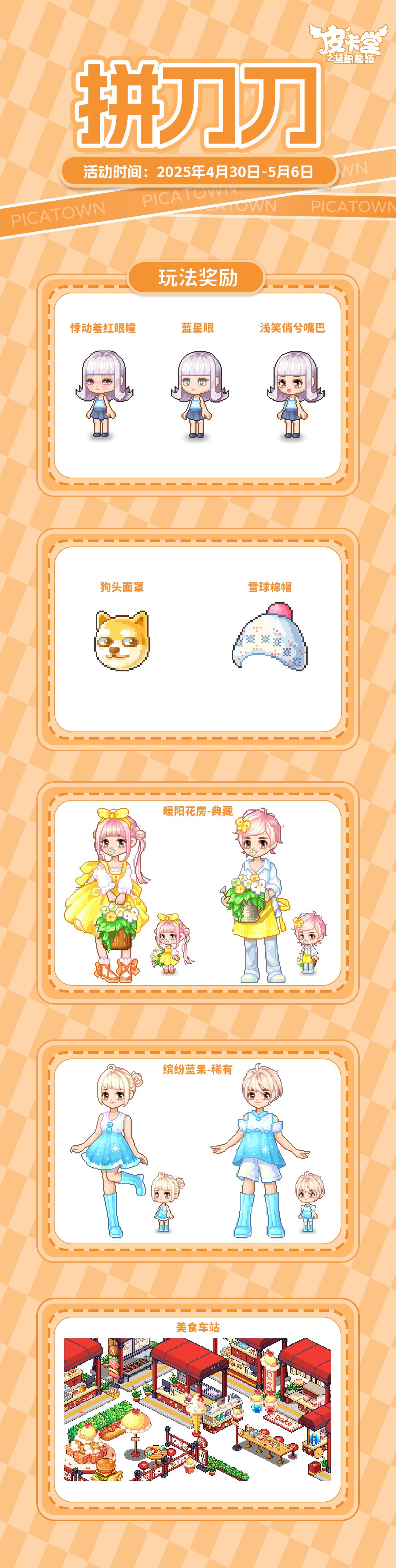 -【拼刀刀】砍价有窍门,好物免费得!真实无套路的零元购,就等你来砍这一刀了!参与活动可获得典藏套装「暖阳花房」、典藏装扮「悸动羞红眼瞳」、华丽装扮「蓝星眼」、华丽装扮「浅笑俏兮嘴巴」、稀有套装「缤纷蓝果」、稀有装扮「狗头面罩」、稀有装扮「雪球棉帽」以及套系家具「美食车站」~