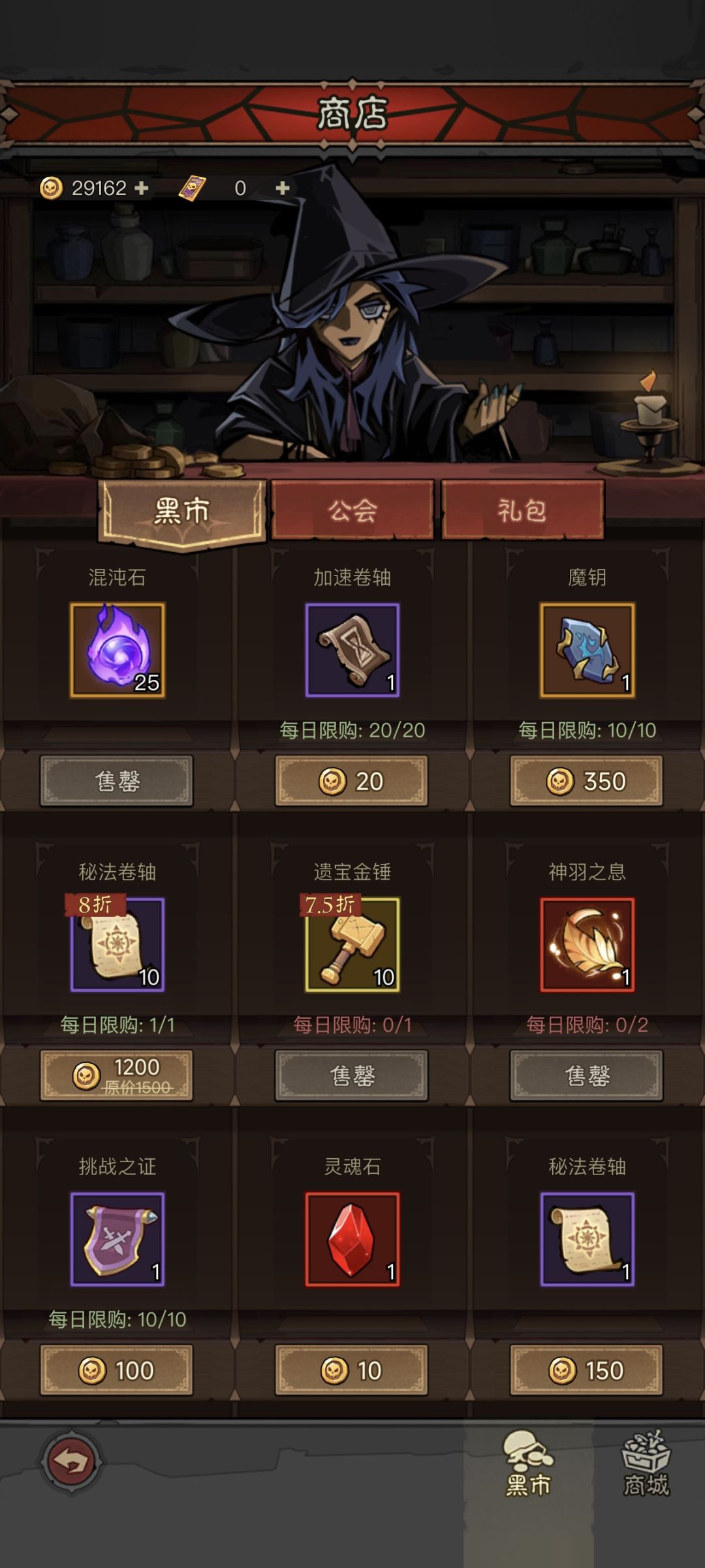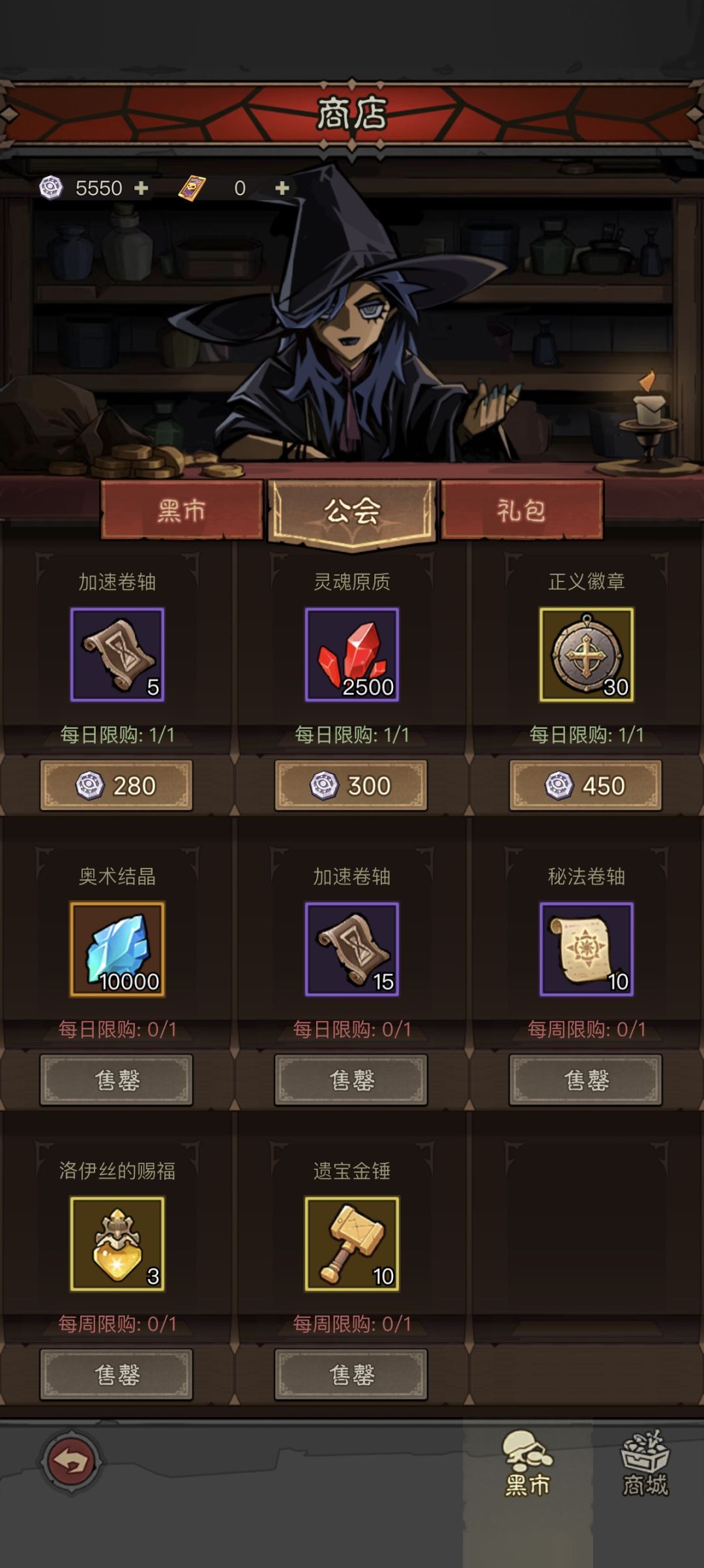 公会、商店:商店只推荐买遗宝和神羽,多余的金币可以在结晶不够的情况下买点结晶,但是不要全买,现在刚出的活动叫古神遗迹,暂时不知道多少一轮,开三天一天得花3888金币买卷,这个活动奖励好,所以劵是必买的,注意留点金币给这个活动,公会商店的话每天的混沌石和结晶必买,每周限定看自己所需,一般第二周开始就不缺公会币买这些了,这游戏第一天的加入公会还是挺坑的,有的公会就疯狂收人踢人,但是第一天的前三公会很少有一直玩下去的,不过你加入公会三捐给的币,就算被踢也不会少,只是恶心人。公会宝库的话我现在神羽是买完的。