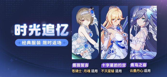 「时光追忆」服装补给开启,「蔷薇誓言」、「十字星的约定」、「青鸟之庭」服装限时返场!