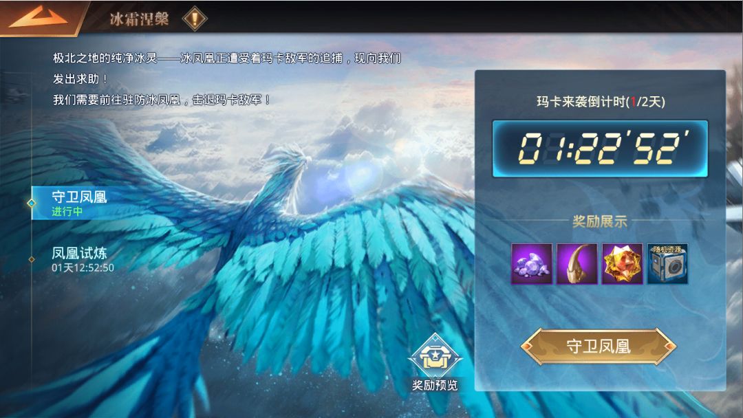 活动期间每日12:30-13:30,玛卡部队将集结进攻冰凤凰,需派遣部队驻防抵御攻势。