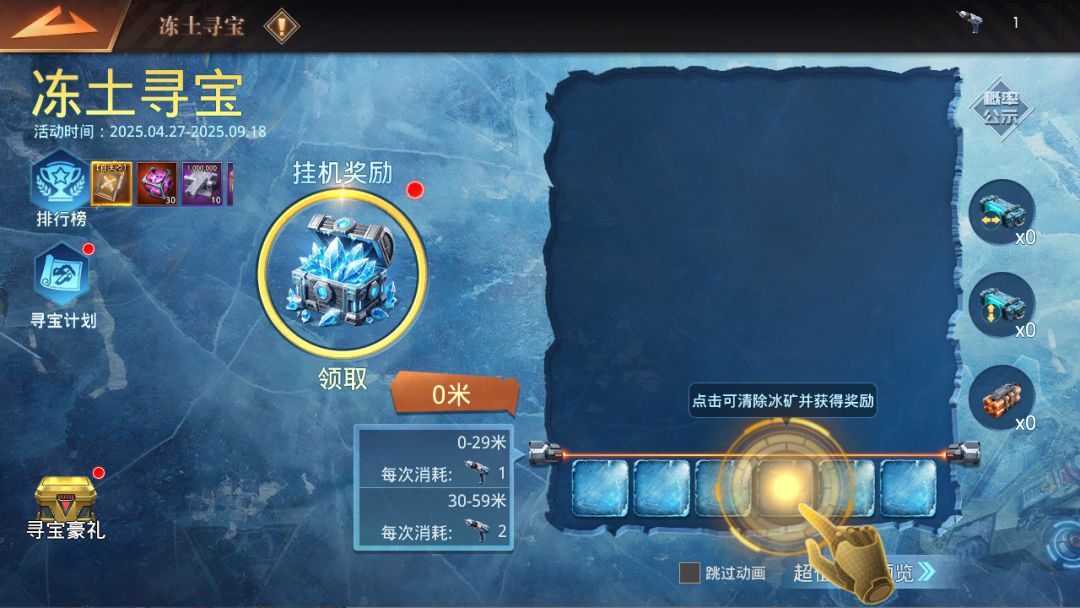 消耗【电钻】清除冰矿,可解锁道路并获取冰矿内珍稀奖励。
