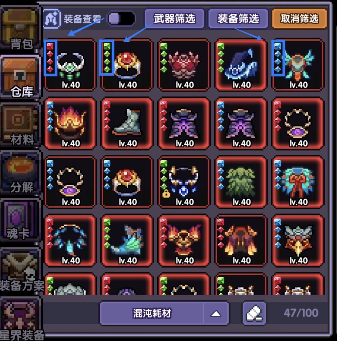 拥有新版本魔女武器后,通过第100关小秘境的勇者,就可进行对应的符文锻造。粉色方框为部位展示,按蓝色标识进行符文锻造,锻造内容为:头部-暴击伤害,披风-暴击伤害,胸甲-符文能量,鞋子-符文能量,项链与戒指不固定,可均锻造一个橙色,当锻造材料不足时,亦可考虑紫色词条符文作为过渡。
