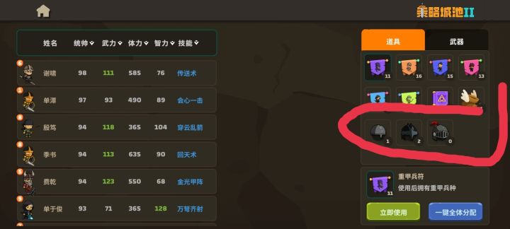 第二步,抽好以后选7个武将凑成一队就可以打关卡或者排位了。(必须7个不然打不了关卡也打不了排位)