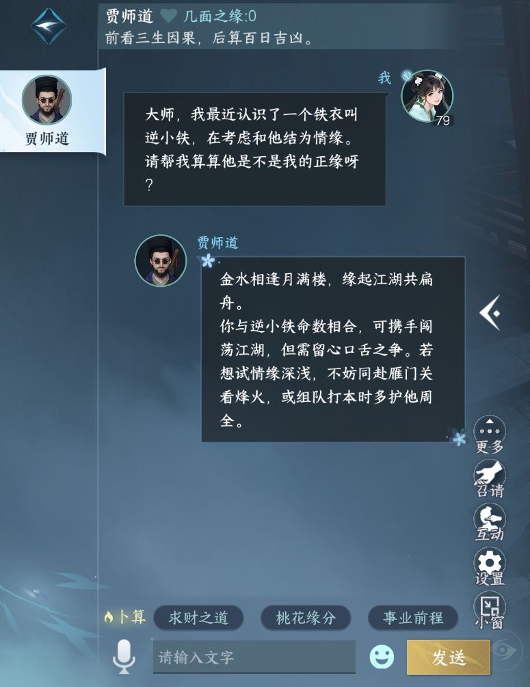 为了让大家少吃爱情的苦,信使将竭尽全力帮您排除情劫,甄选正缘。在新版本中,欢迎您前往以满血版Deepseek为引擎,熟读《穷通宝鉴》等经典书籍,懂得八字等专业玄学知识的权威“赛博贾大师”处咨询,信使先邀请了几位同门帮大家测试了一下,准不准请同门们评论区现身说法!