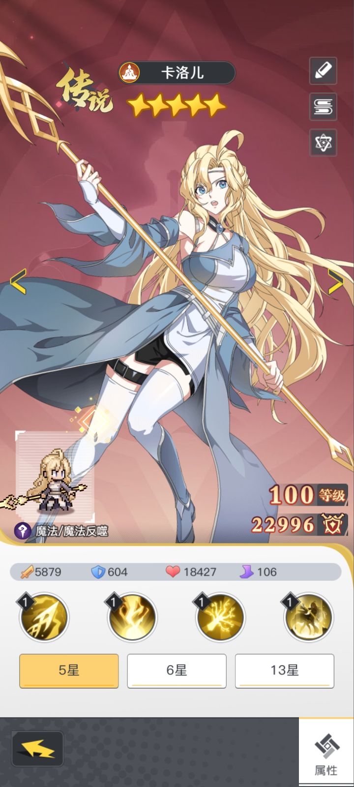 这个怎么说呢,非酋必备,抽卡随便出,毕竟是传说级英雄,竞技场分高了还送一个,随随便便九星。强度还是挺不错的,切中后排用。不过只适合前期抽不到强力角色过渡用,后期用可用吕小鱼替换。