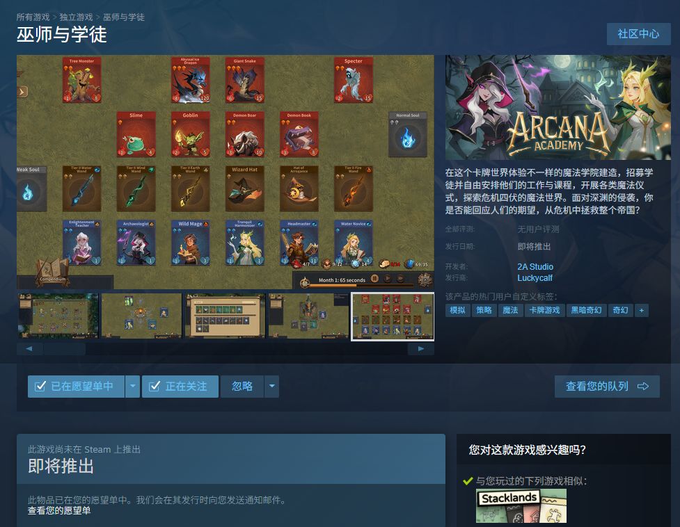 最近沉迷堆叠大陆这种卡牌构筑+模拟经营的奇妙组合!刷Steam新品时瞄到个魔幻风学院建造新游,感觉像是霍尔沃兹版堆叠大陆?不过看截图跟介绍更注重学院经营养成以及魔法仪式啥的,感觉有点意思,奈何还没出demo,求大佬安利现在就能玩的同款!像素风、修仙题材或者太空殖民主题的都行,不挑食!