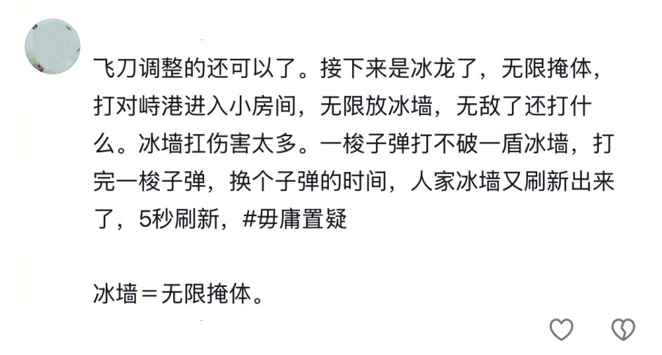 *被动技能冷却提高至三分钟。如受到持续性攻击,冰墙的被动技能将无法快速生效!想用冰宠长期保命的萤火虫,要改变自身策略了!