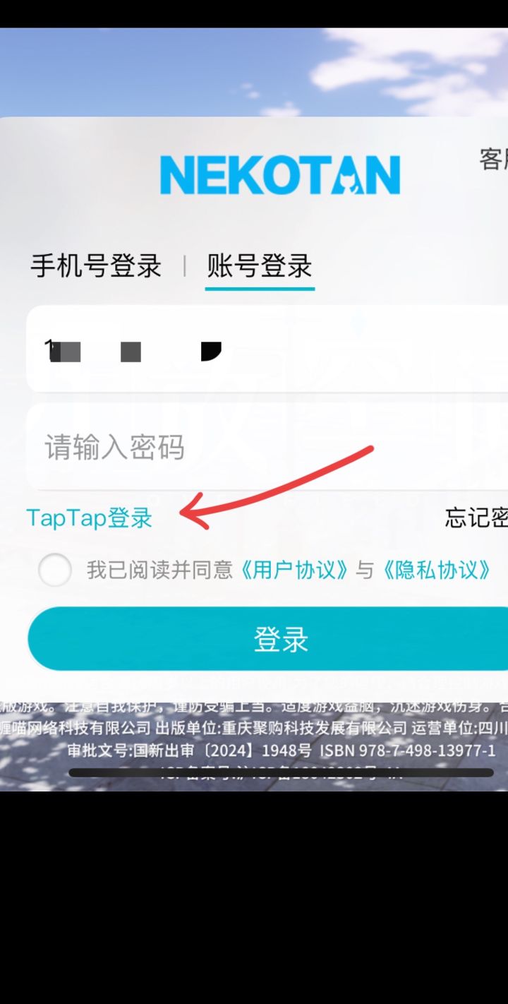 2. 如果此前是TapTap账号登录,请确保本次登录的TapTap账号与之前一致,需点击taptap登录按钮并且确定为同一tap账号登录。