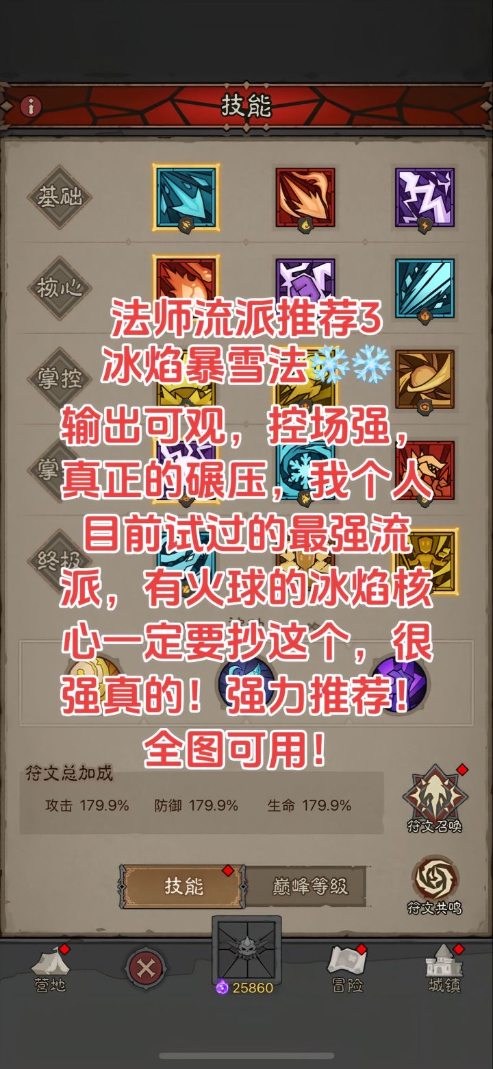 输出可观,控场强,真正的碾压,我个人目前试过的最强流派,有火球的冰焰核心一定要抄这个,很强真的,强力推荐!!!全图可用
