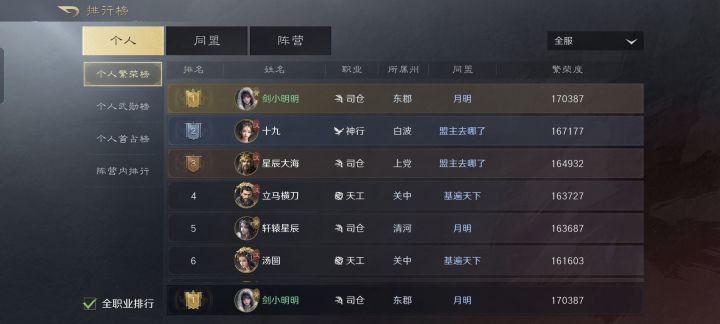 不要羡慕哥,哥只是个传说。不仅司仓职业第一,也是全服唯一突破17万繁荣度的。三谋里果然还是做农民香,吃喝不愁冲繁荣榜也是手到擒来!