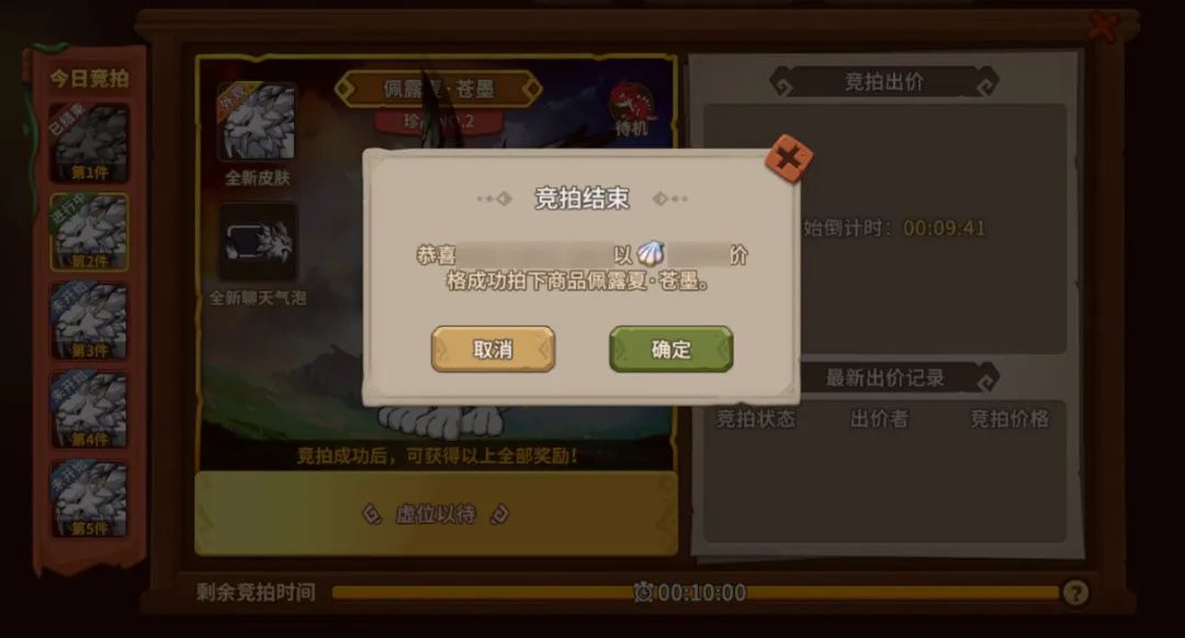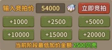 出价失败时不扣除贝壳,出价输入栏的出价会自动调整到当前最高价。出价失败的情况有: