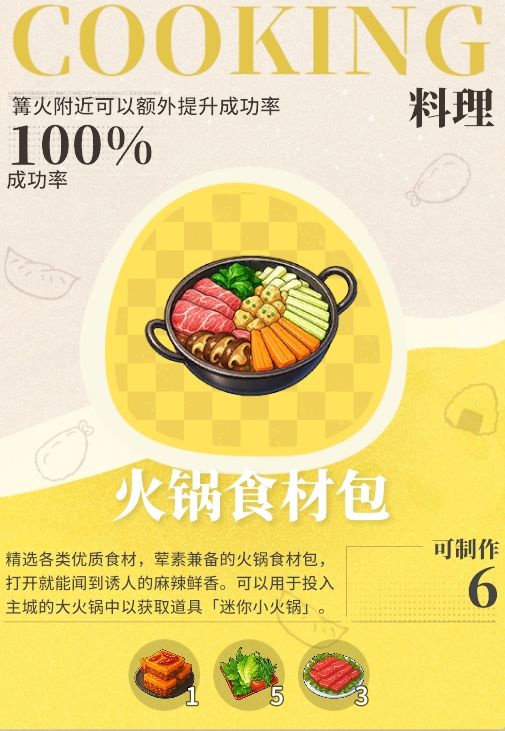 火锅食材包的制作可以在活动界面,或者在生活-料理-蒸煮中制作。