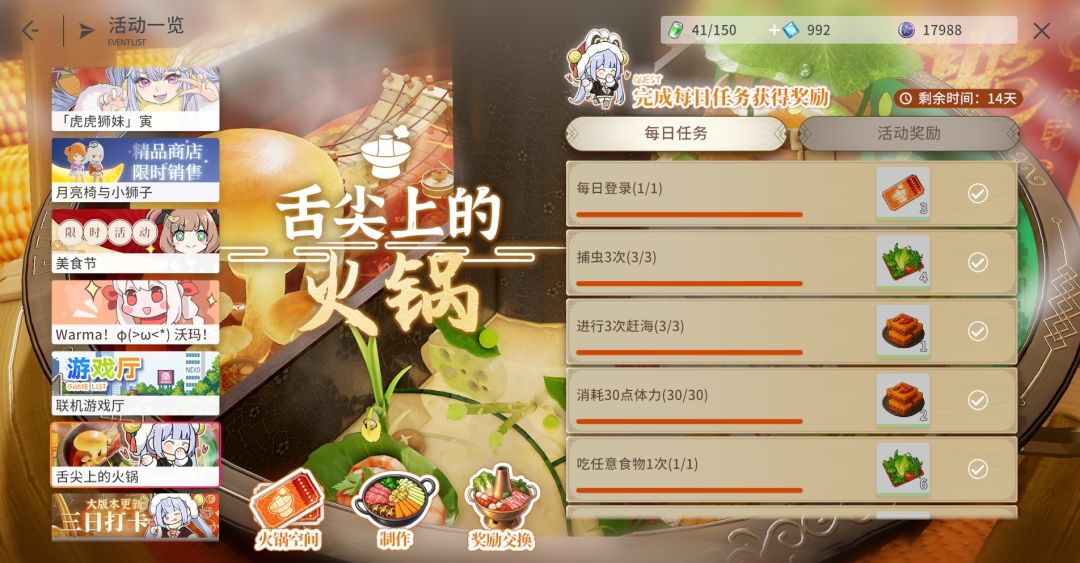 点击舌尖上的火锅,可以查看每日任务,都比较简单,如果清空兼职的话顺带就做了。