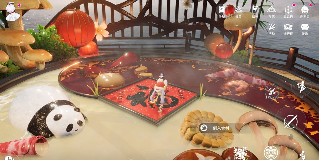 点击右上角的活动界面,舌尖上的火锅,在总部地图时可直接传送,或者在廊桥位置跑过去也可以看到一个风车和寅。