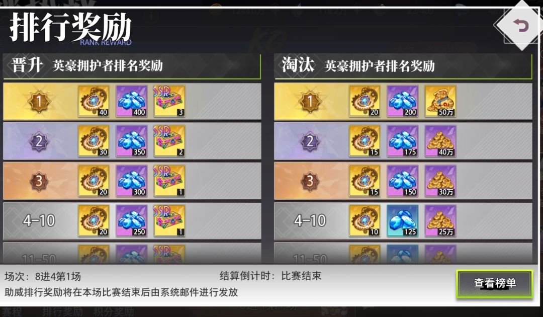 比赛共有七场,每场比赛都有排名及积分奖励,可以优先跟着投票优势方投道具,只要排名在前200名就可以获取一个SSR装备箱子;至于投票劣势方也可以适量投一些,两边的排名奖励是可以同时获取的,能薅一点是一点。